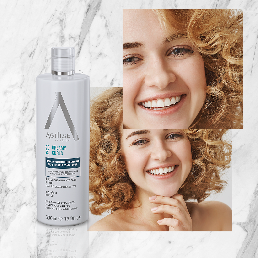 Condicionador Hidratante, com Óleo de Coco e Manteiga de Karité que nutrem profundamente a fibra capilar, promovendo cachos e ondas mais definidas e hidratadas. Desenvolvidos especialmente para cabelos ondulados, cacheados e crespos.