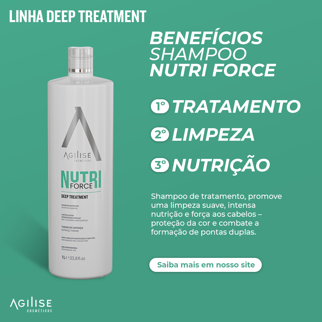 Shampoo de tratamento, promove uma limpeza suave, intensa nutrição e força aos cabelos – proteção da cor e combate a formação de pontas duplas. MODO DE APLICAÇÃO: Aplique o Shampoo Nutri Force nos cabelos molhados, massageando suavemente, deixe agir por 1-3 minutos e enxágue; para melhores resultados, repita o processo e em seguida aplique a Máscara Nutri Force. PRECAUÇÕES: USO EXTERNO. Em caso de irritação, suspender o uso e procurar orientação médica. Manter fora do alcance de crianças e animais domésticos. Evitar contato com os olhos. Caso isso ocorra, enxague abundantemente com água. Em caso de alergia a qualquer um dos componentes da fórmula não utilize esse produto. Manter o produto em local seco, fresco e ao abrigo da luz.